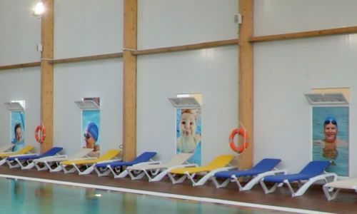Vous pouvez profiter de la magnifique piscine semi olympique , intérieure climatisée et chauffée située sous une gigantesque coupole en verre et profiter ainsi du soleil en plein hiver .